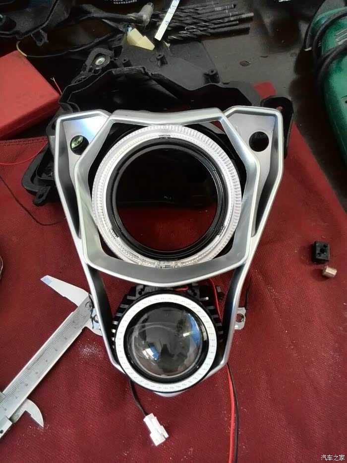试装后发现灯位置还是太高。 就是那宝马天使眼害的! 继续磨