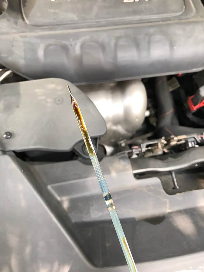 现在3.07W公里,本人在2.9W的时候到4个S加满了机油,现在的机油条如下。跑了1000公里不到,各位车友真的要定期检查加机油才行呀。