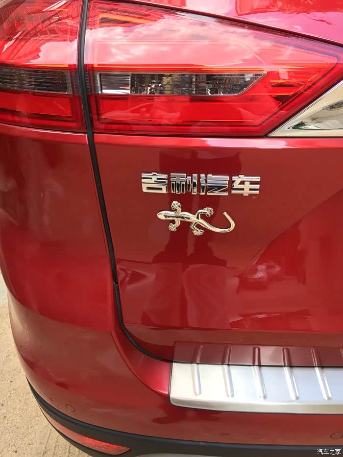 今天简单的说说我的博越吧,首先博越的外观是真好看,整车运动感,家族式的前脸设计底部的保险杆真是运用的恰到好处,整个前脸会让人第一眼就会被它吸引住,还有那两颗鹰眼大灯也是炯炯有神的大眼睛啊;说说侧面吧,博越的侧面绝对有很大优势的,健硕的车身设计加上悬浮式车顶整体看很硬朗,简单说就是一个侧面杀手;尾部的尾灯位置偏高,提高警示性的同时,又能很好的提升尾部的视觉上的效果(还是有点突兀,不过我的事红色的,看起来好点),底部的双排气更是凸显运动效果,两个排气都是真的!