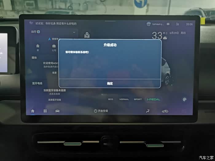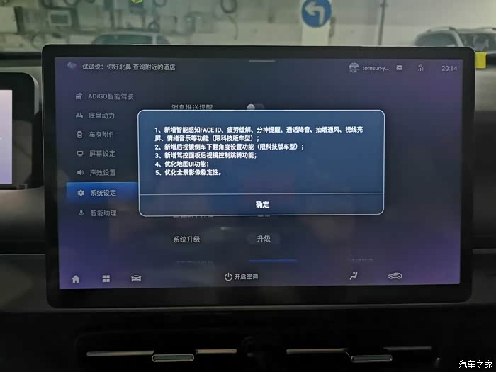 今天早晨,启动车辆后出发上班,发现升级后车机表现有所不同,即有了开机问候语。同时主动询问是否到公司,且规划了到公司的导航路线。或许车机更加智能了吧!今天暂未发生中控屏卡死现象,但愿以后也不要有!
