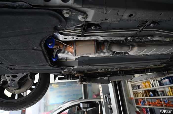 升起来后,随手一拍,左边黑色的是原厂护板,准备拆掉,买的是一个套装,外露的三元催化器也有专门的保护罩。