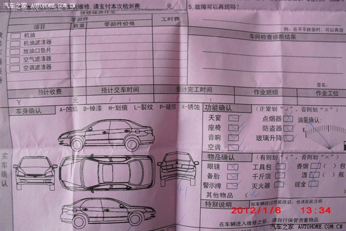 2012年1月4日。驱车至4S,说明情况,4S接待上图