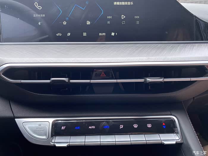 中控出风口和空调按键,钢琴键的造型很别致