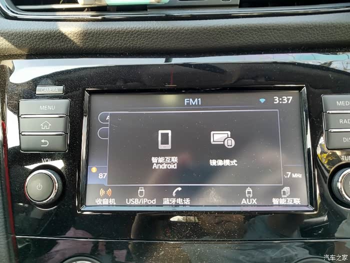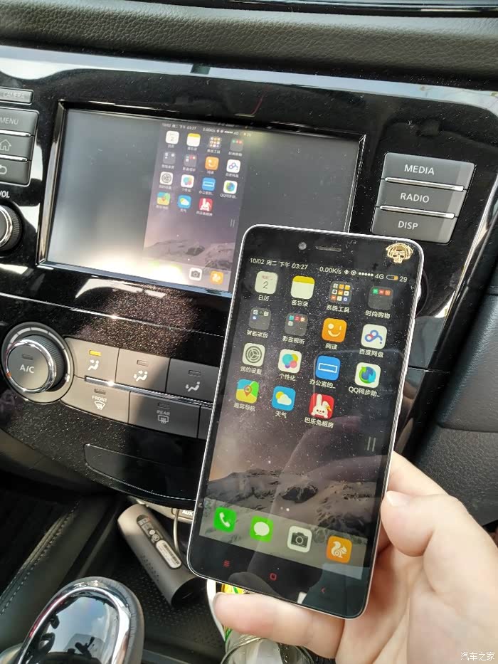 车载媒体上选择镜像模式,随后荧幕显示和手机桌面一样的画面,但没法横屏