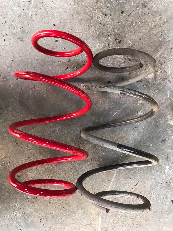 新旧弹簧对比,高度一样,新的会粗一些