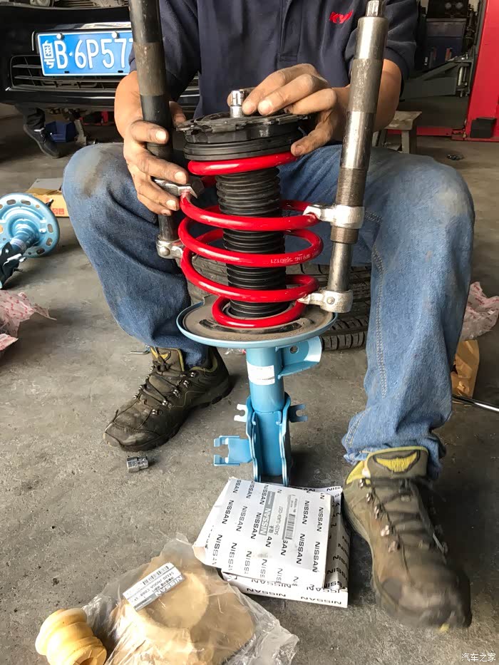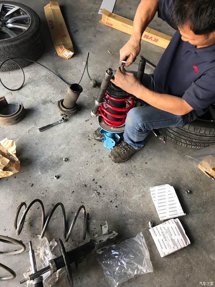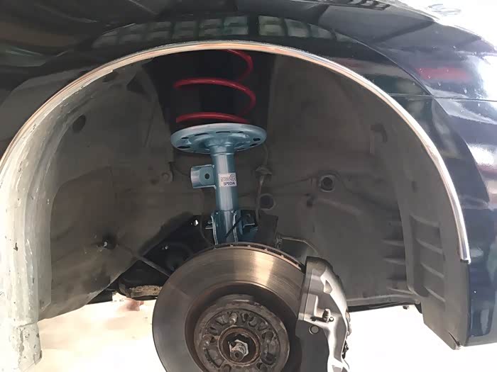 小弟继续来报道,天籁在我手里开了半年多,避震一直是个心病,前后高度基本在2指左右,后座有时家人会坐,满人的情况下,基本就下限到车眉边了,很容易和轮子刮蹭,再加上前几个月回了趟湖南,部分路段是乡道,炮弹坑比较多,一路上都是提心吊胆,底盘也刮蹭不少,最近右前避震漏油,比较厉害,基本漏光了,开车中,底盘明显松散的很,过减速带就更响了,所以避震必须要换,问了很多次避震店老板,本考虑换TIEN的绞牙,但我车轮毂太大了19寸的,又装了轮眉,换绞牙更容易刮蹭,最后只能换避震,那就上蓝筒,一切以舒适为主!大家请拿好板凳瓜子,大片即将开始