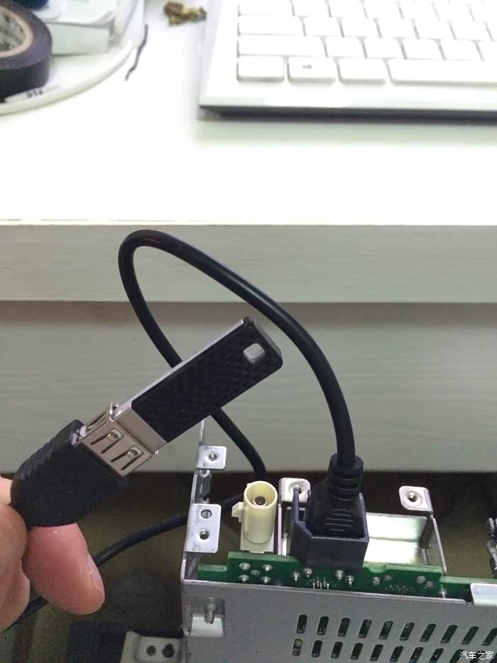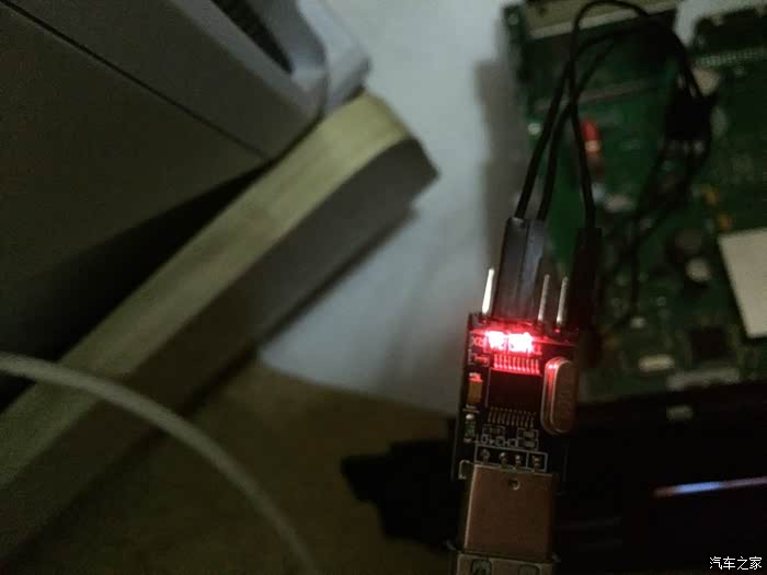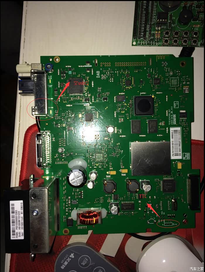 8.将ttl转usb通过杜绑线连至导航刚焊的接口上,注意tx对rx,rx对tx,即主板上的rx 对ttl转usb模块的tx。把ttl转usb模块连上电脑并装好相应驱动,