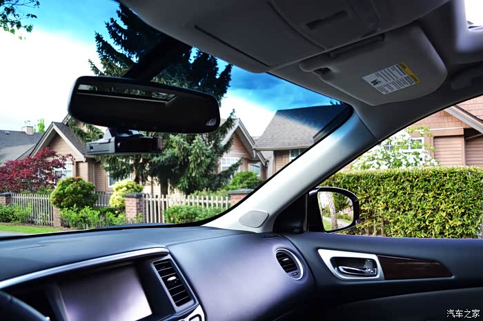 后视镜下面3个按键是HOMELINK,可以编程对应3道不同的遥控门,比如小区的门,车库的门。