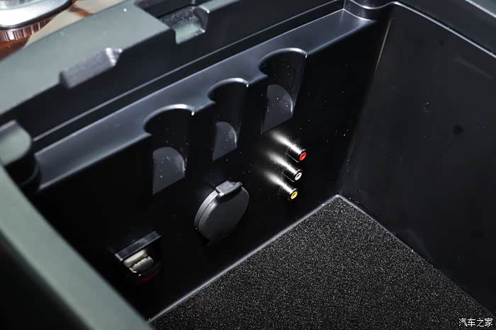 中间小箱的下层,里面有音频视频输入端子,USB MP3输入,和点烟器电源输出。