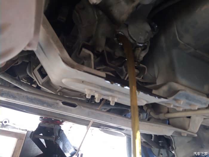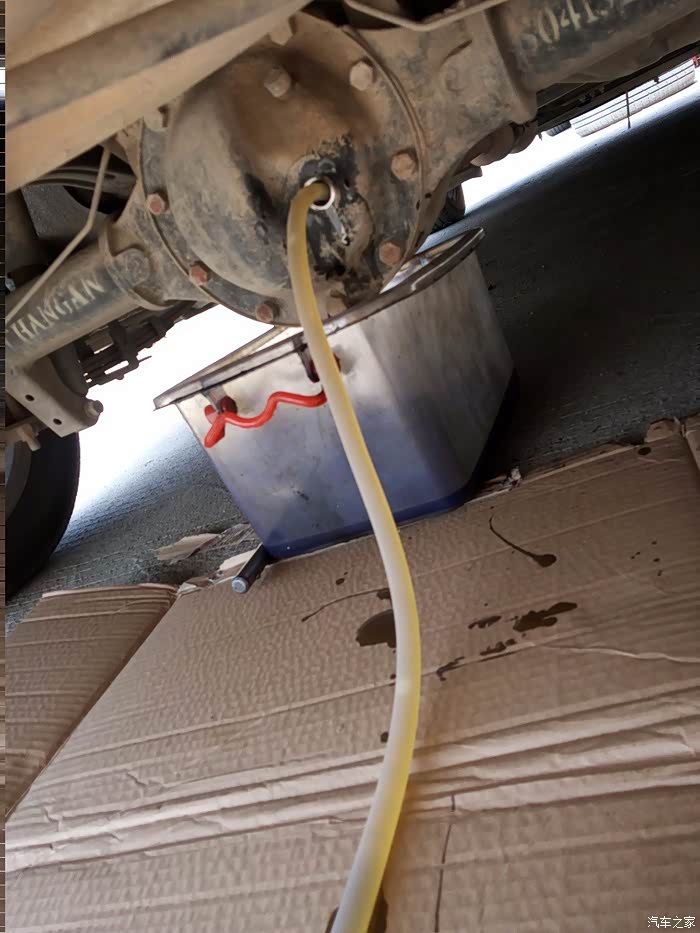 开了这么久油肯定是很脏了,但这欧诺还是很耐艹的, 油这样使用也没有什么异常,挂挡除了离合片磨损需要适当调节一下,其实离合片才调到一半,基本还能跑几万公里才需要更换,当然这和咱们开车的习惯太重要了,有的人基本几千公里就能把离合片烧光或者是用坏, 就是一个人单人换齿轮油比较麻烦,要爬进爬出,要泵油 要上螺丝,难免浪费了不少新油,所以最好有2个人协同作业, 变速箱位置比较低 我用千斤顶顶起,垫了板砖,更方便更换,一桶齿轮油正好前后使用,经济实惠!