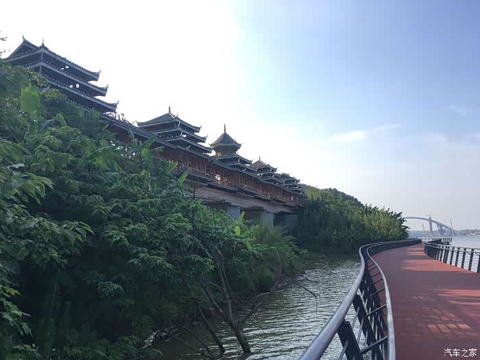 此次我并没有从大道的头,开到尾,只是随便的找了比较近的地方休憩了一下,毕竟此次出发的目的是出来吹吹风,我发现在离三门江森林公园不远的地方,有一座缩小版的“风雨桥”,将车子停在“风雨桥”附近,上桥后,江面的风轻轻拂来,非常凉爽。