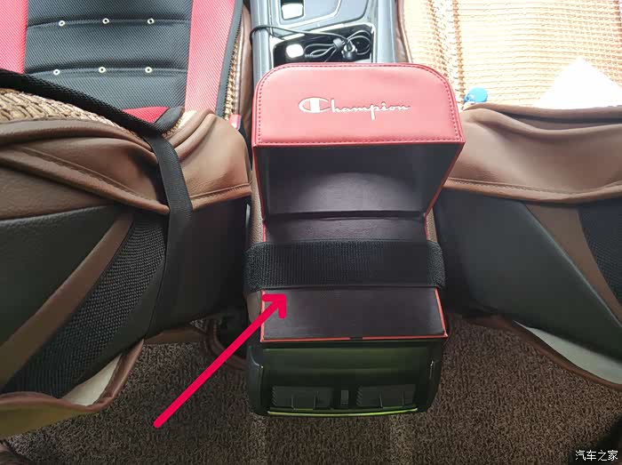 再用黑色的橡皮筋固定在扶手箱盖子上面。