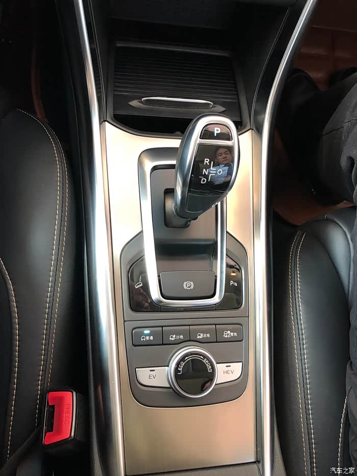 档杆的空档是要把档杆推到最左侧位置保持2-3秒才可以挂在空荡位置,P档是按键模式,按下后系统会自动拉起手刹,这个还挺喜欢。档位两侧有一个下坡缓慢,预防车速过快,右边是雷达。在电力过低时是会自动使用燃油