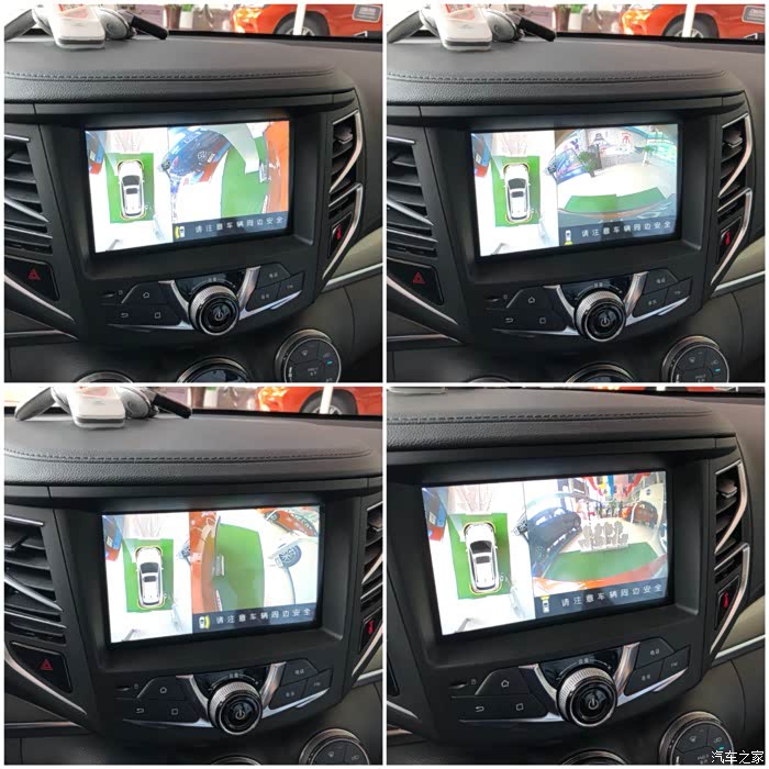 左侧会有一个鸟瞰的全景,右侧是前后左右的影像显示