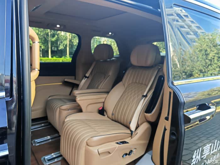 第二排跟其他的MPV不太一样的,是两个座椅中间的两个扶手,是动不了的。二排,三排都可以放儿童座椅,都有接口。