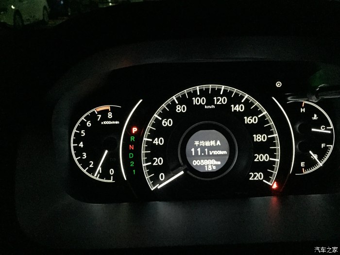 3888KM留念,油耗11.1,还是比较喜欢这种仪表盘的,直观
