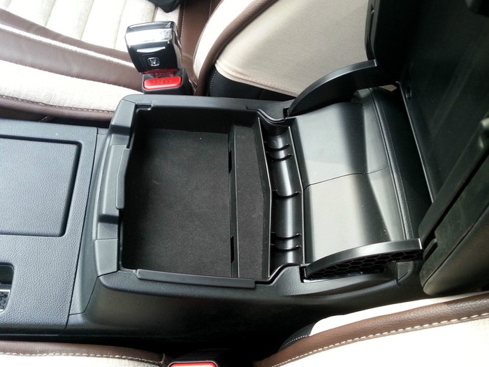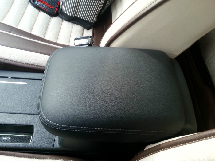 答案揭晓,扶手箱里面多加一层,放点小东西挺方便的。