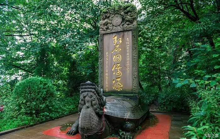 穿过上清宫向着宫后的一片清幽进发,还未到达极顶的老君阁,先是看到了大赤天宫,在大赤天宫的后方的道路上,左右分别有一座龟驮石碑,右边刻着大道无极,左边刻着碧洞仙源,由于下雨的原因,游人不算太多,青城山显得愈发深沉。