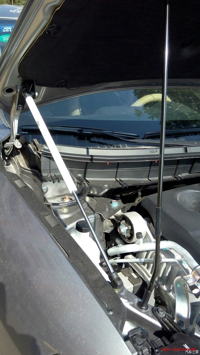 花200网上购了一对白色的引擎盖液压杆,自己动手安装上了,原来的无需拆除,作为备用。安装后打开引擎盖自动缓升到位,超好用。工具:12、13、14、17的扳手。