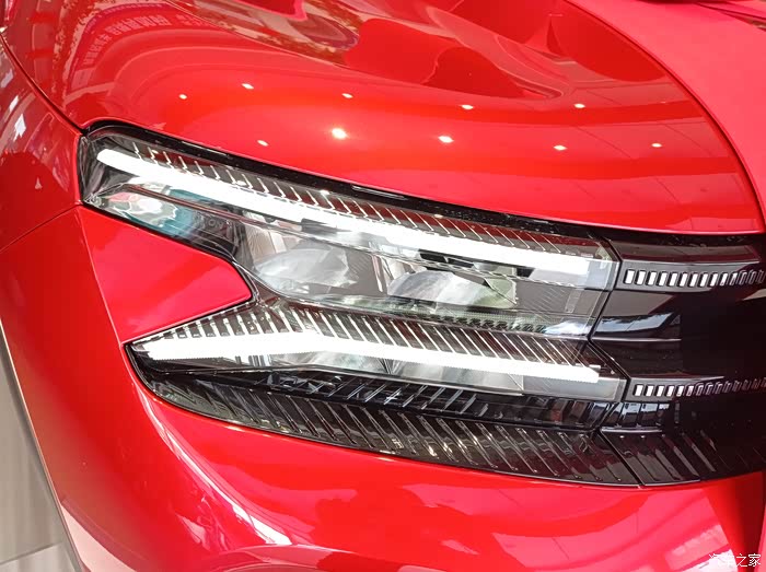 灯组两端呈拓张的燕尾造型,拉宽视觉宽度,整体呈现X造型,寓意无线扩张。配备22个LED发光体,照得更远,看得更远,更安全。