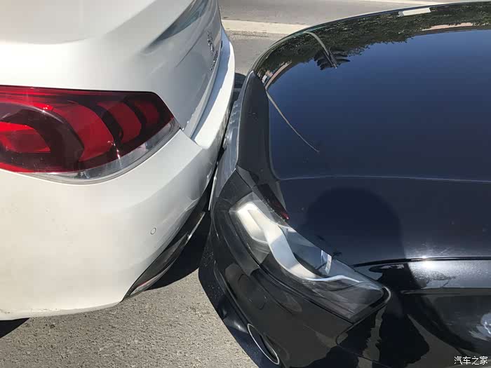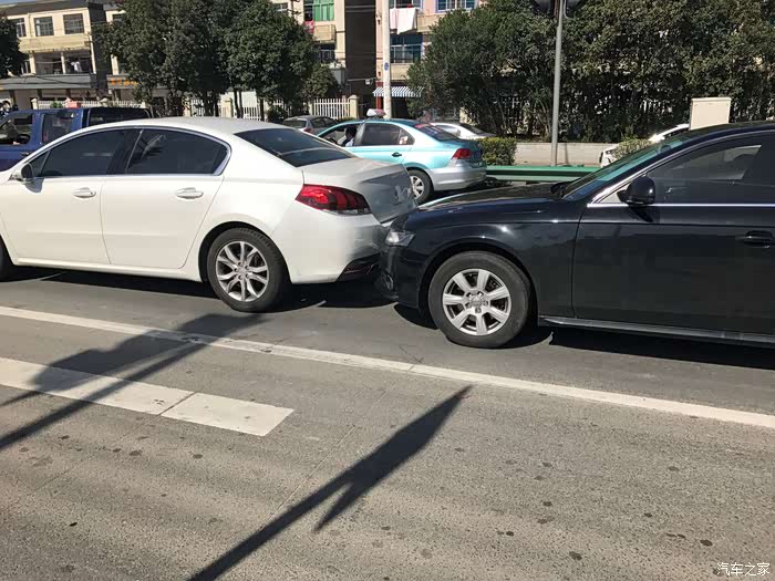 在路上等红绿灯,被二逼A6溜车撞了,司机低头玩手机,他全责