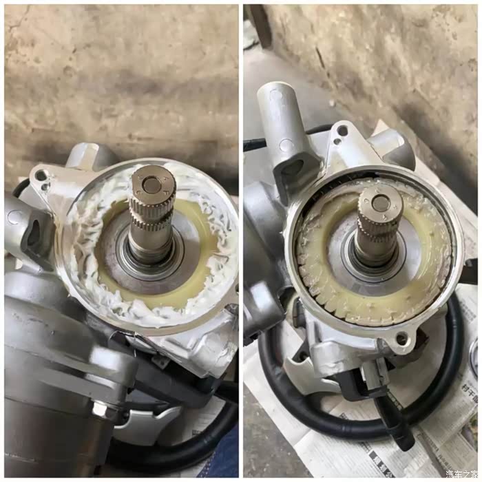 维特拉方向卡顿,也许有的车友没有这现象,特别是高速或快速路,,方向不需要大动,只需要微调的道路,很难受,轻微调一下,好像有什么东西卡住了,稍微一用力,方向就会一晃,胳膊一直很紧张,所以决定解决一下,搜索论坛上高手的方案,大体弄明白了涡轮和方向机的结构,也就是内部润滑不良。无奈动手能力太差,自己不敢拆方向盘,就想在方向涡轮外壳上打个小洞,注进润滑油能不能可行?开始想在涡轮底部盖子上钻孔,这其间得到四川车友pidandy的指导,最终决定在壳体上钻孔,这样好操作,注油也正好注在齿轮上,说干就干,找亲戚修理店,工具就一个手钻,二毫米钻头,壳体大约三毫米厚,小心点,正好钻透就停。然后用油枪注入润滑油,路试,完美解决,封口用的密封胶一堵完事,图片没有几张,一看就懂!