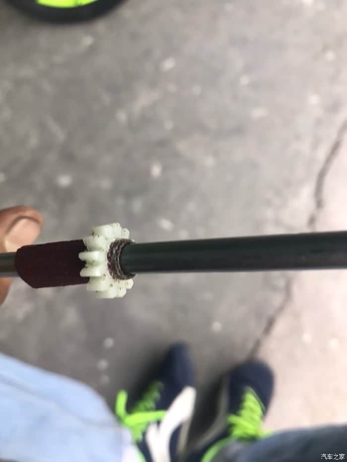 把齿轮取下来,找点砂纸,裹在起子上,在套上齿轮,左右旋转来扩大齿轮内径,注意内径不要搞得太大,不然会有间隙