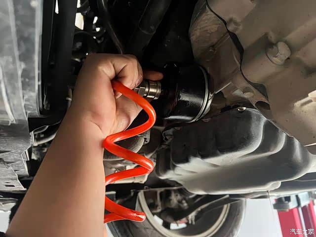 接着就到了重要环节了,今天的重头戏……深度换油!所谓深度换油,就是利用特殊的方式,把平时换机油放不出来的残留在油道内的脏机油逼出来,这么做的目的是什么?估计很多人会说,装模作样……