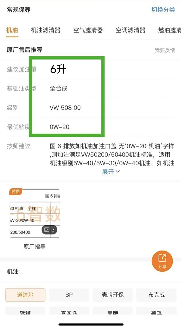 查询软件,看看这车究竟用什么机油……对于国6B带颗粒捕捉器的车子,如果机油用错了,堵了颗粒捕捉器,那就该哭了。仔细记住这台车改用的机油型号。