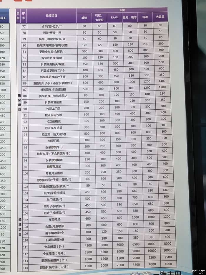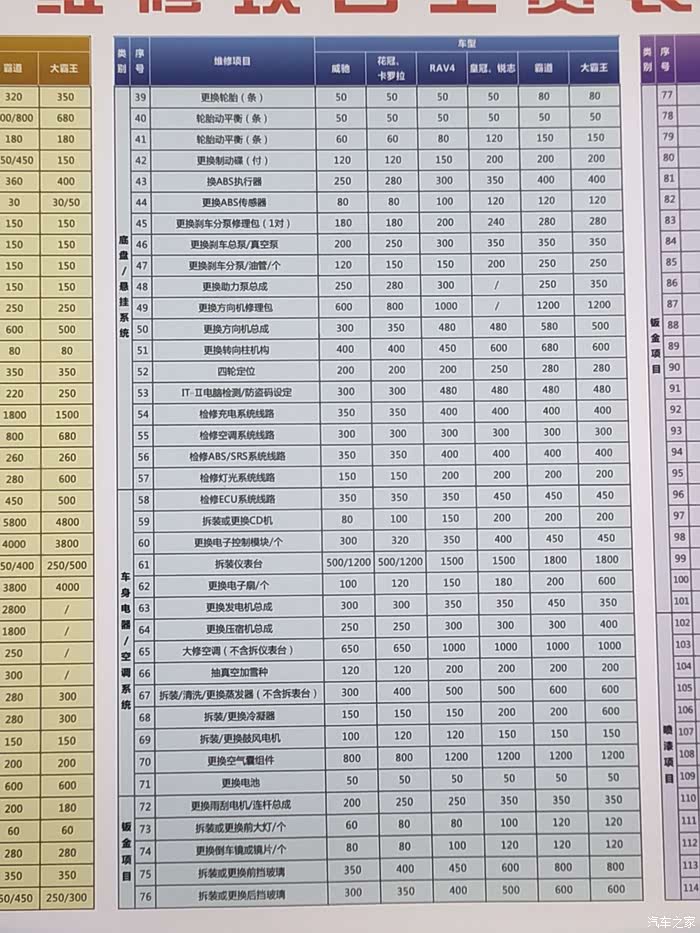 在等待洗车的时候,在客户那无聊,就拍了工时费列表...
