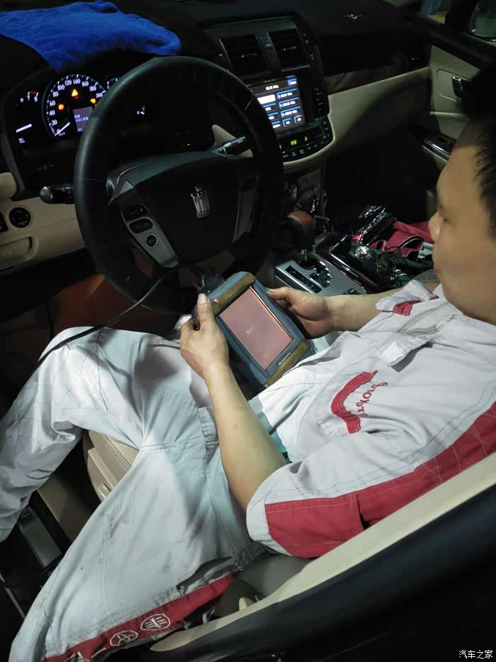 师傅用电脑检测万以后,又开出去试了下车,然后又开回车槽检查,最终诊断是右后轮的ABS传感线束问题,要订货...