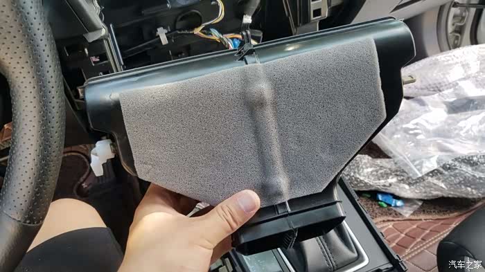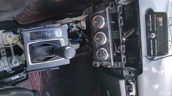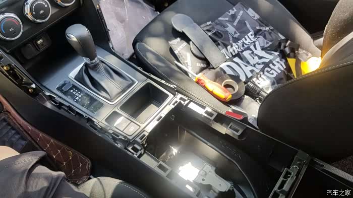 这是把整个中央扶手都拆除了,(注明:由于空间较小,拆除时最好挂N档,方便拆除)