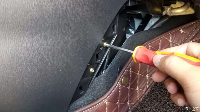 装饰板拆完后,即可拆中央扶手箱,中央扶手总共要卸掉2个卡子,9颗螺丝