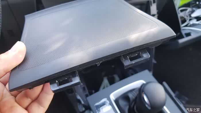 整个中央扶手拆除时需要把左右两边同时用力拔出来,注意不要刮花面板