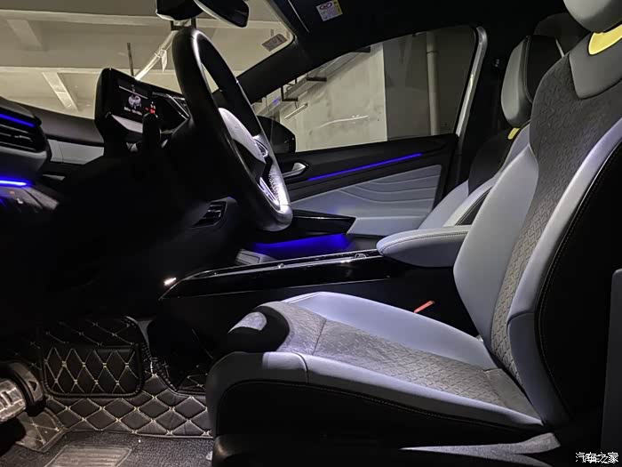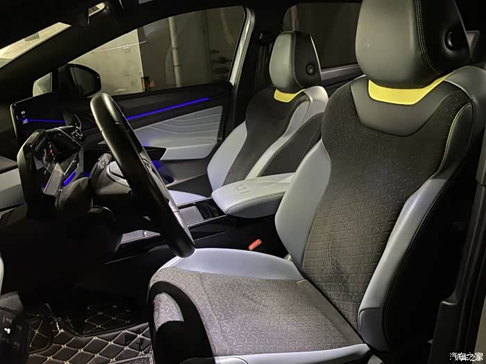 车内的配色也不错,蓝灰耐脏,又时尚。