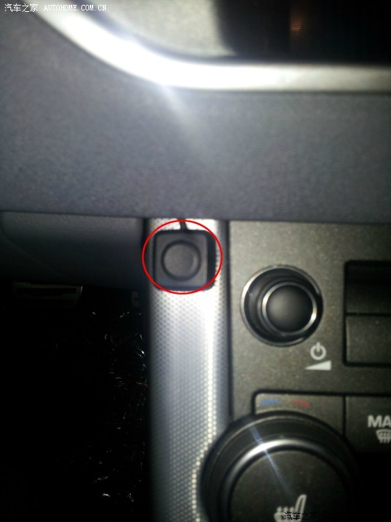 如图下:我标圆圈的地方,是技师安装的一个按扭,也就是全景摄像头的开关。
