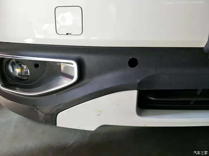 放雷达探头的开孔,再次见到那被撞悲壮的前杠