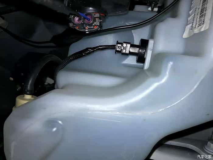 。这个位置,也是店里施工的师傅和主管想了蛮久决定的位置,毕竟前雷达探头连接线长度有限,也希望避开大电流的干扰。