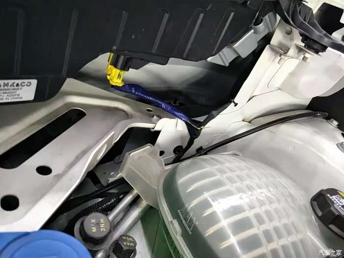 右前雷达探头引线在车头处固定位置。同时也可以看出领克的设计和做工还是蛮不错的,点赞