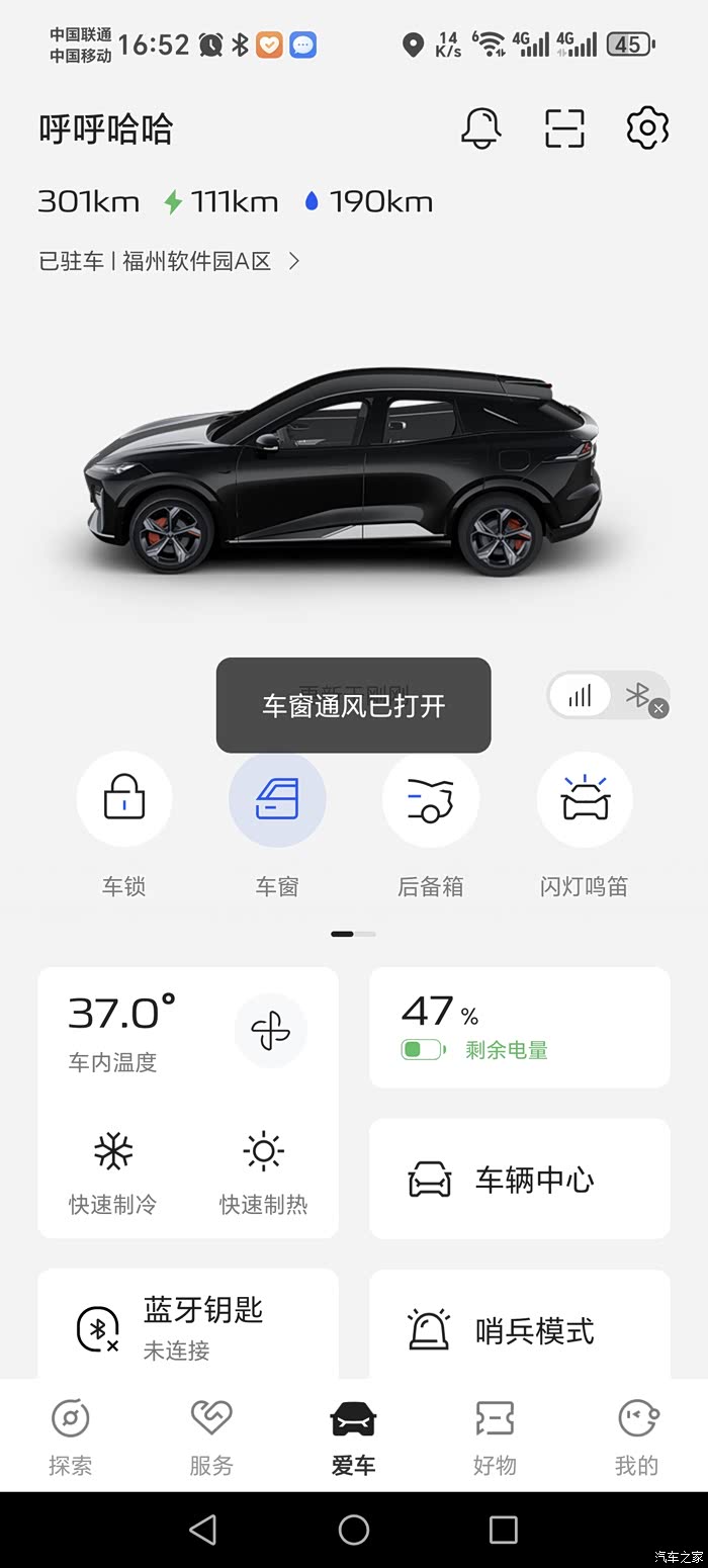 1、在没有晒太阳的情况下,没有什么味道。太阳暴晒,车内温度达到40度后,车内就会散发出味道,还好APP可以把车窗设置为通风模式,在晒太阳的时候能够更快把异味散出去。马上夏天,也能上车前提前开启空调,这样就舒适多了。