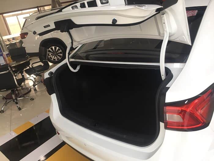 荣威i5侧面有着小溜背的设计还是很有运动感的,其车身尺寸为4601×1818×1489mm,轴距为2680mm,在紧凑型车里表现还是挺优秀的,后排空间也比较宽裕。