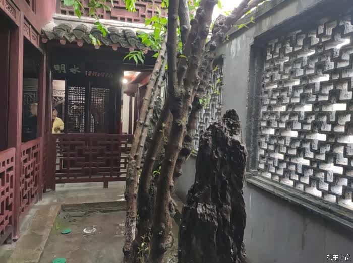 在隐玉斋前,有一株落地盆景——古桧柏,也叫“六朝柏”,说是如派盆景蟠扎技艺的代表性作品,咱也不懂啊,反正挺好看、挺有型。此树据说是曾家父子所植,距今已有1000多年历史,要是真的就厉害了!
