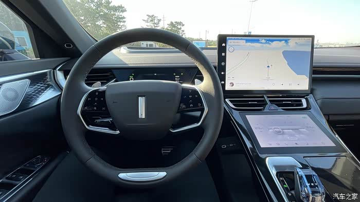 方向盘握感的我敢还不错,最喜欢的还是中控屏,这样和方向盘的横向对比,就可以看出中控屏到底有多大了