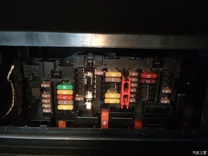 有同125领先车友嘛,看一下副驾驶手套箱保险盒照片哈,储物箱打开,盖板上面卡扣往下一拉就可以看到了,想看线路一不一样,如图。