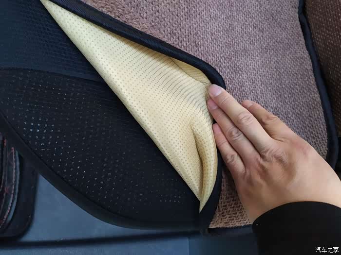 这件亚麻坐垫总体是浅灰色外观,当然相比较外观,档次比较一般,但是却非常实用,坐垫周围采用了黑色织布包边,避免了坐垫的损坏,坐垫反面带有化纤材质,也对亚麻坐垫起到了一定的保护作用。坐垫面积比较大,座椅头枕也可以覆盖,后排座椅采用了整体的设计,不会有不贴合的现象,显得比较平整,亚麻坐垫,也是应对冬天低温的一件好装备了。