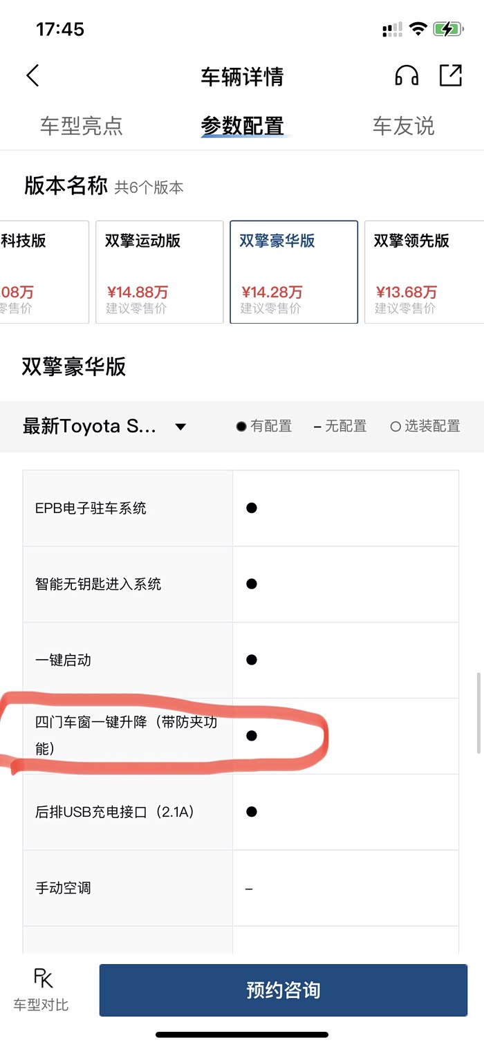 看app上配置,双擎豪华有一键升窗功能,在哪里呐?没有啊!只能一个窗户一个窗户扣。
