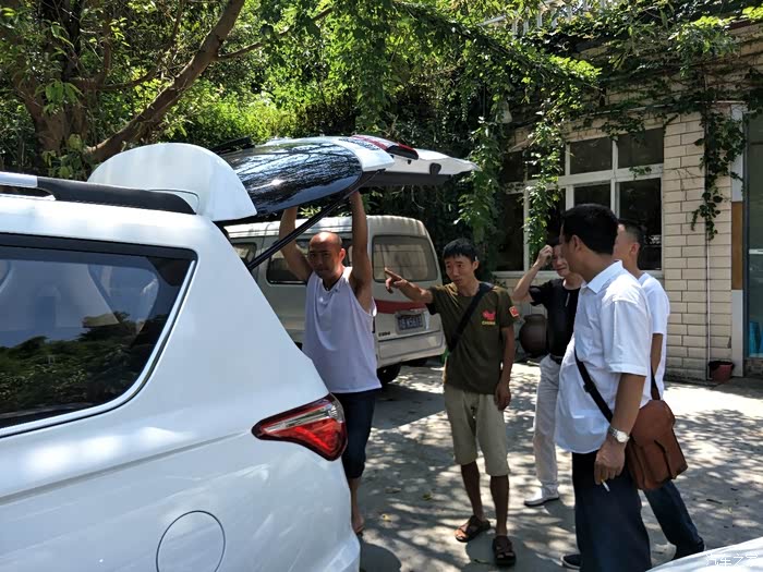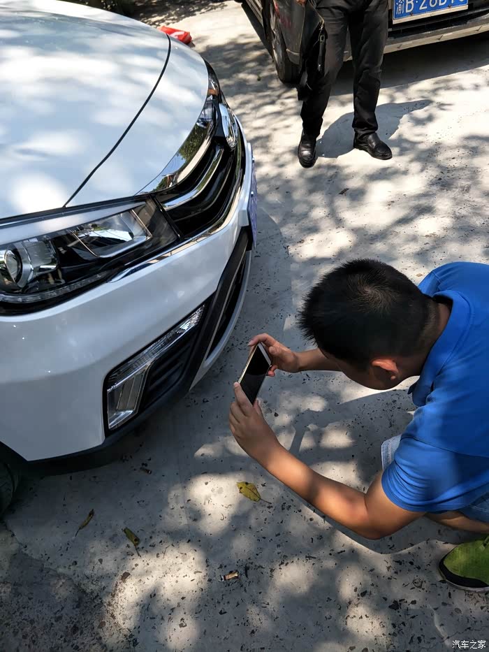 这两个车友,直接用手敲起了车皮,仔细听着铁皮的回馈声音来判断钣金质量。。看来,今天又学了一招了。。。