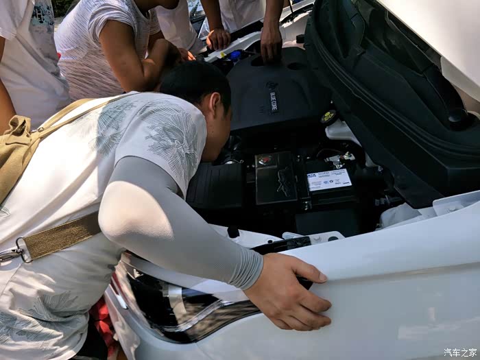 还有基友用手指去使劲按发动机的锁紧钩,看看钣金质量去了。。。。