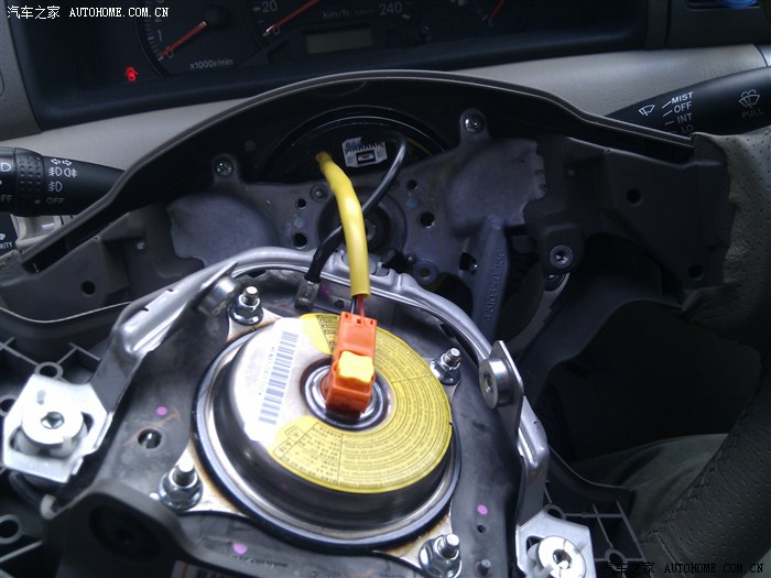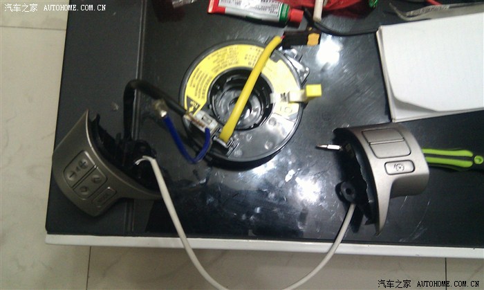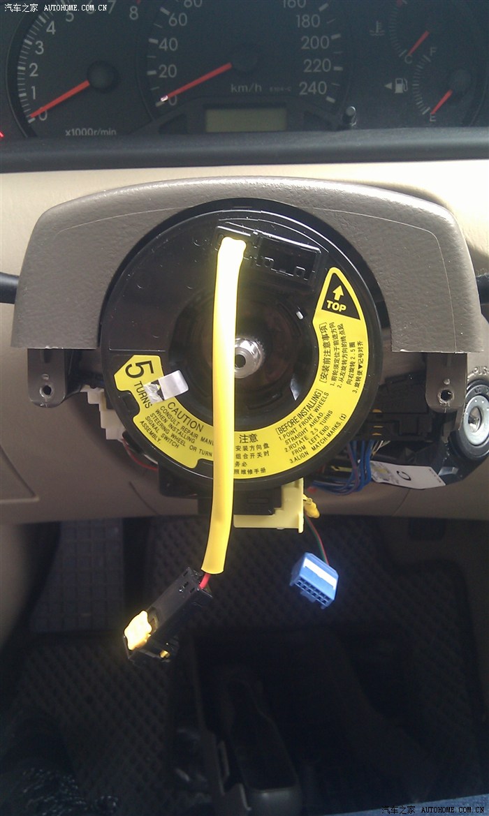 拆下原车cd试用了一下,功能全正常,就是进入本次改装最麻烦的一步,改方向盘游丝,相信这也是不少想改多功能键的大哥最头痛的问题,但是现在这问题情己经不成问题了,因我为找到了一个花冠能用的原装高配游丝。就是它了