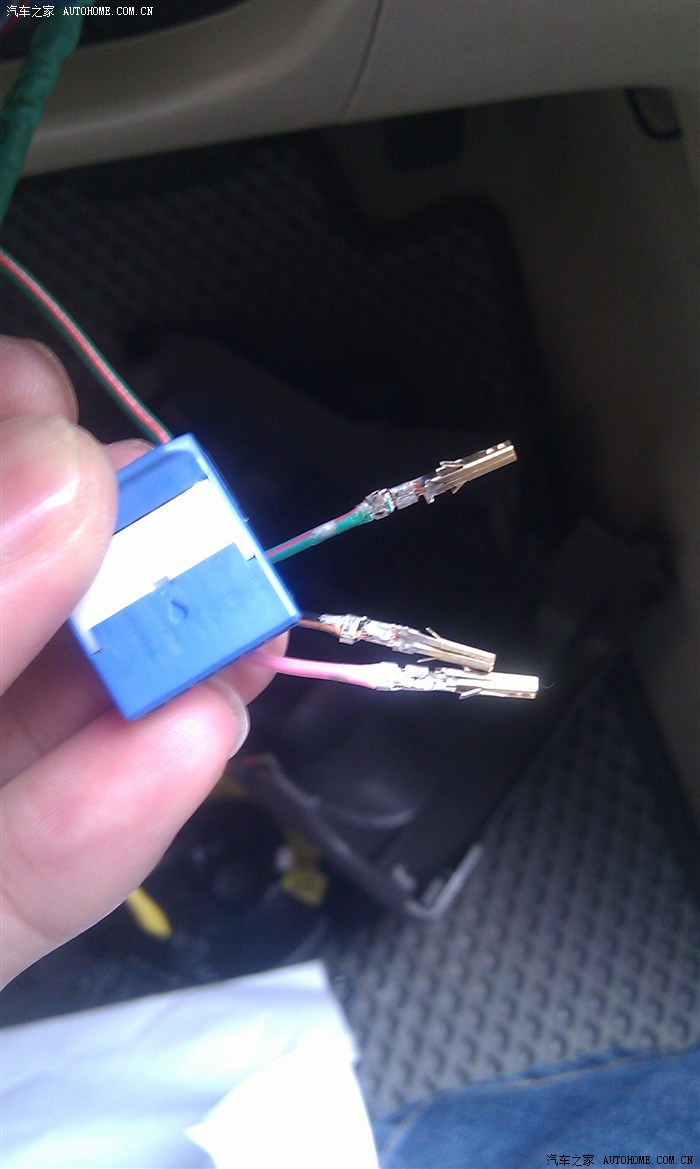 将从森林人里面引出来的三条线接上原来喇叭线的空插座上(装森林人cd的时候买的无损线上己经留了这线了),注意线的排列,这次我没有引出背光灯的线,如果装背光灯的正极引出来要拉四根线。(注意:不用引出背光顶的负极)